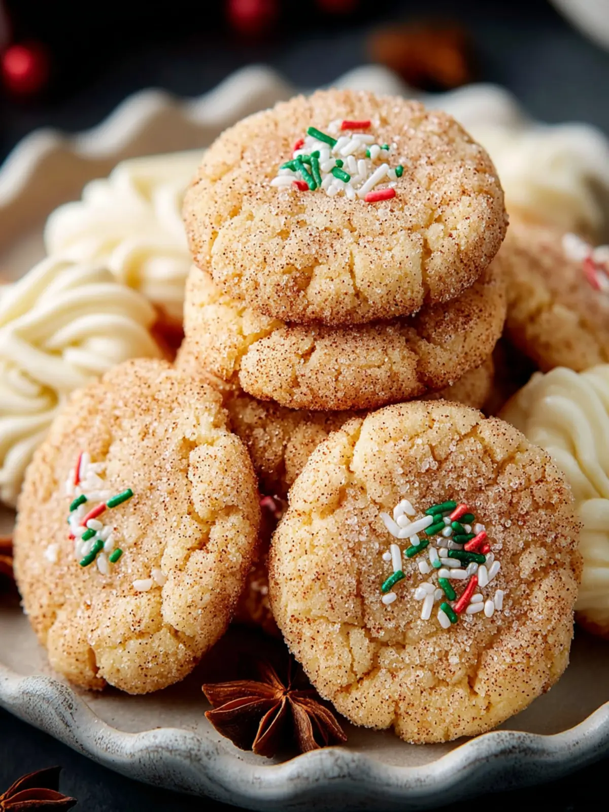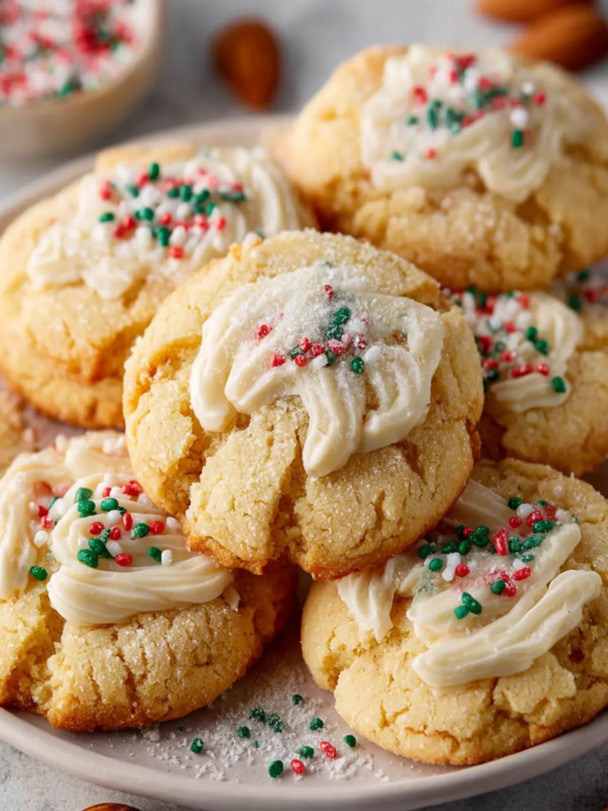 - If desired, decorate cooled cookies with buttercream frosting and top with sprinkles. For the pictured frosted cookies, I used the Wilton 12 piping tip to swirl buttercream on top of the cooled cookies.