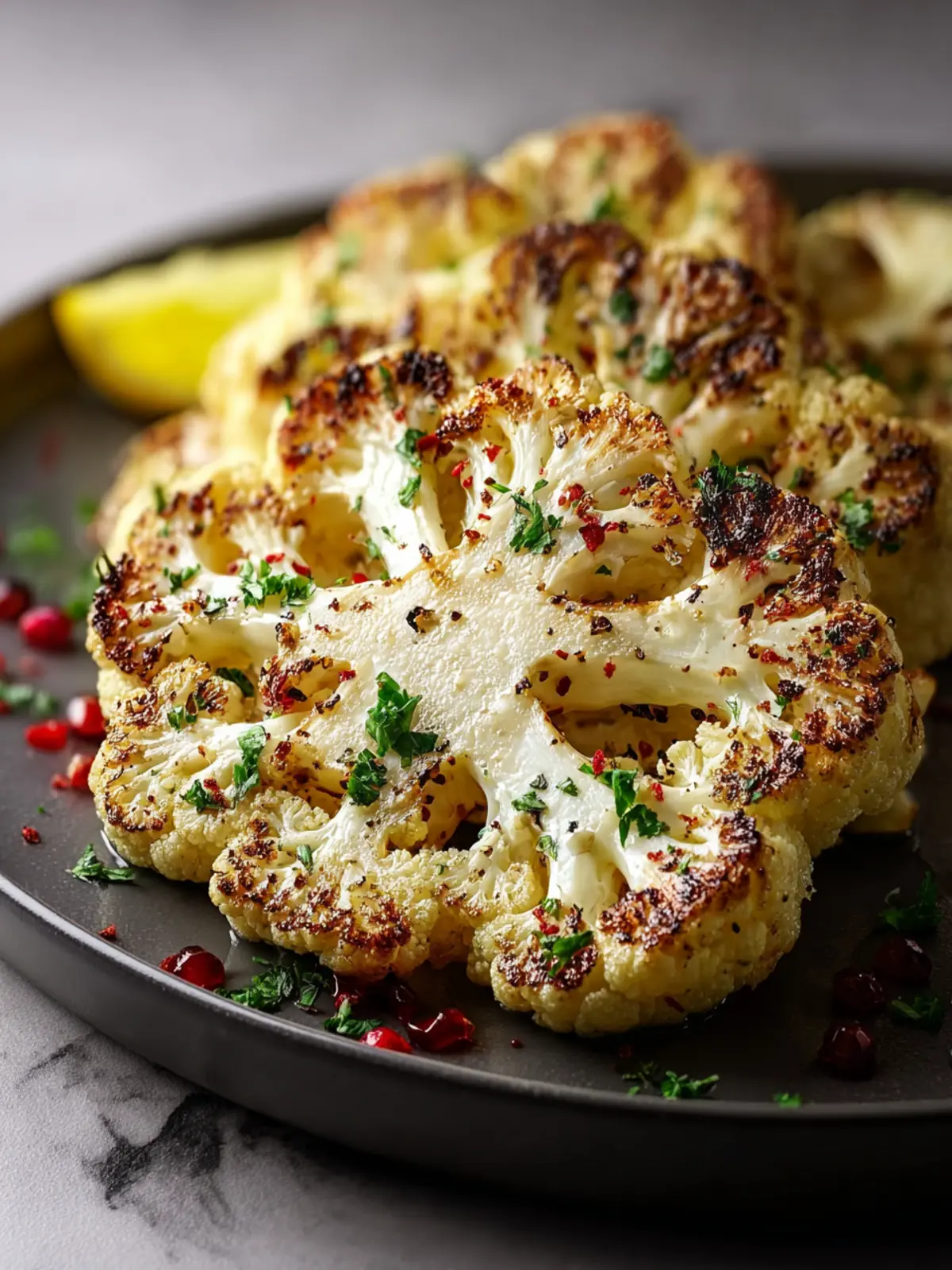 9. Serve your cauliflower steaks hot, accompanied by additional lemon wedges or herbs if desired, and enjoy the crispy, tender perfection.