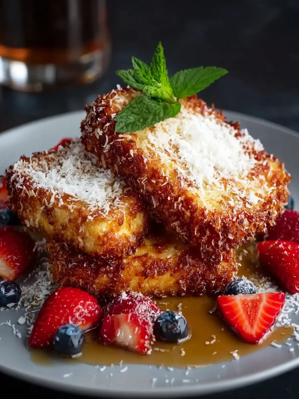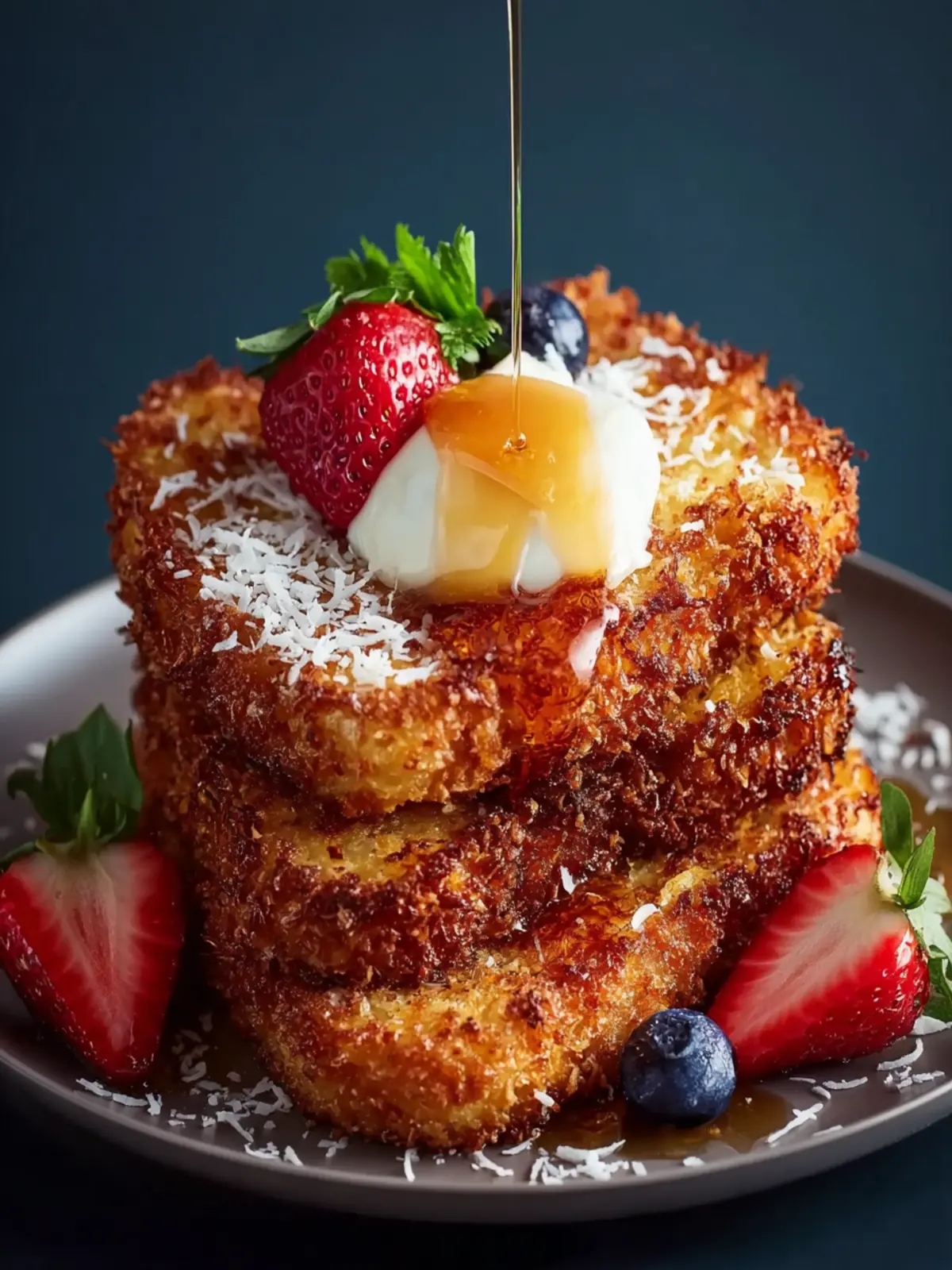 This coconut crusted French toast is rich, crispy, and bursting with tropical flavor.