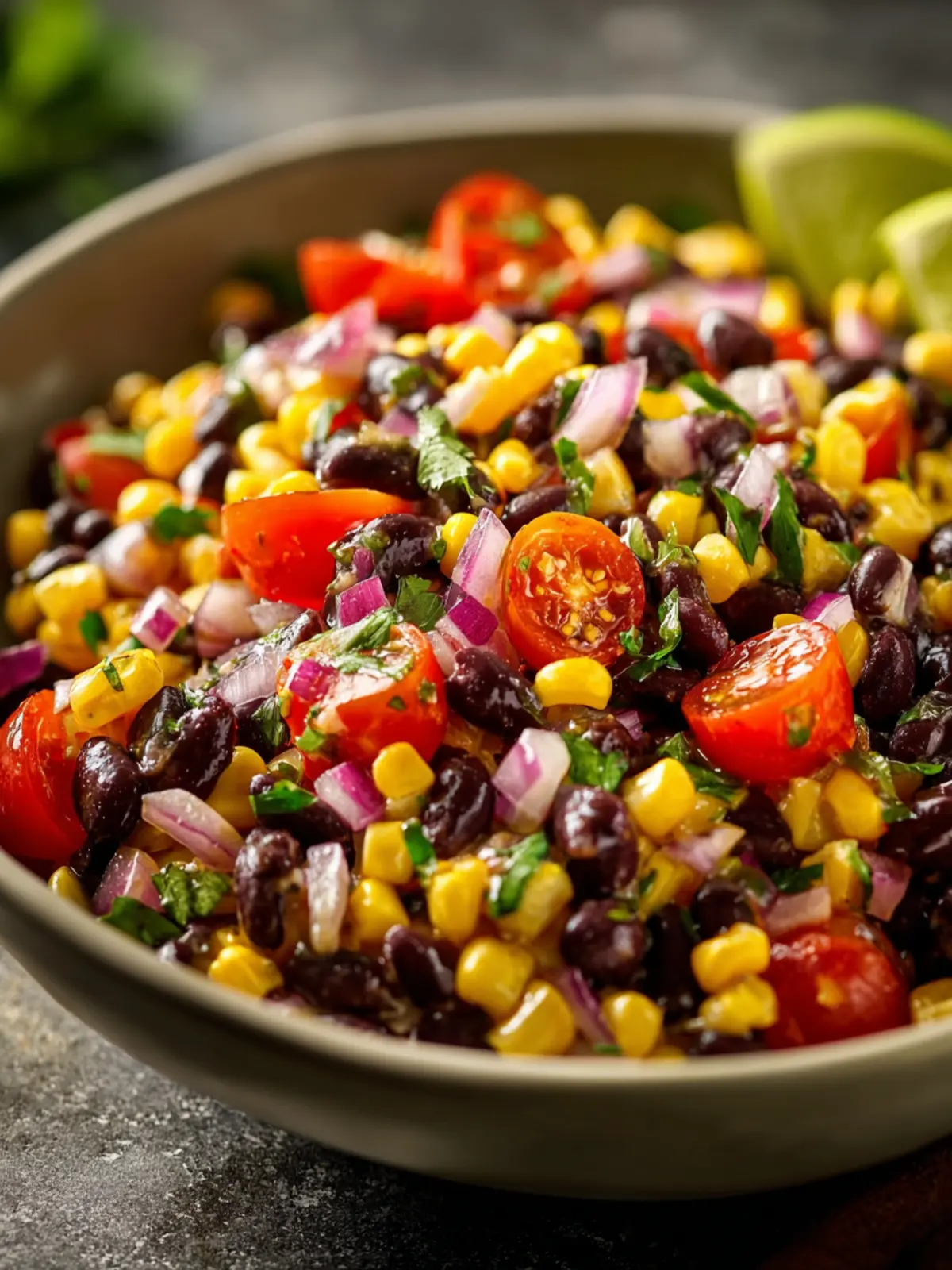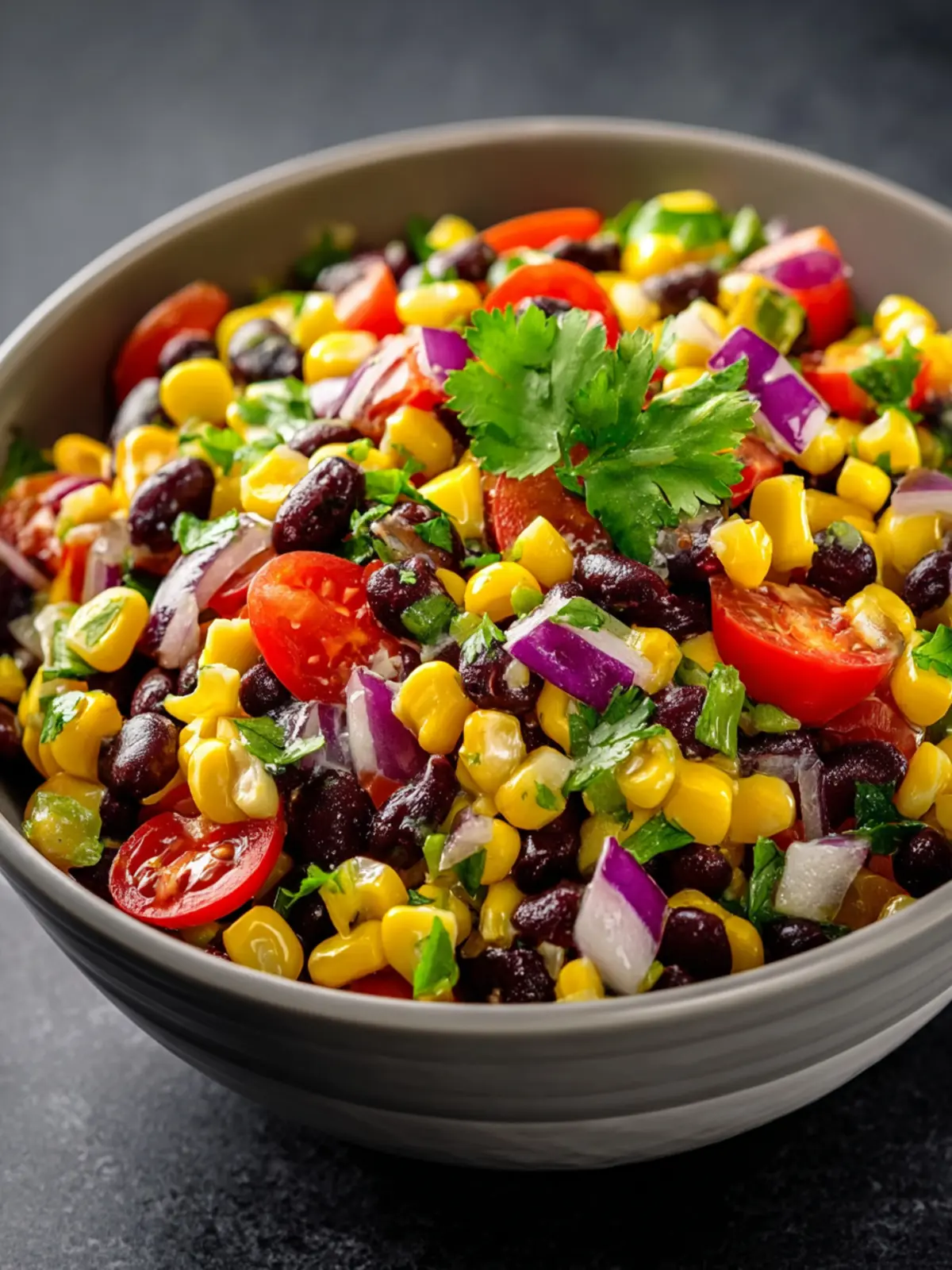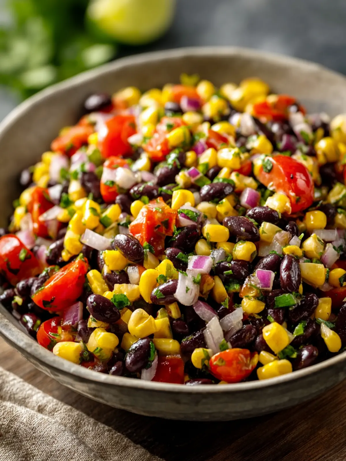 A vibrant and refreshing salad made with fresh corn, black beans, and a tangy lime dressing.