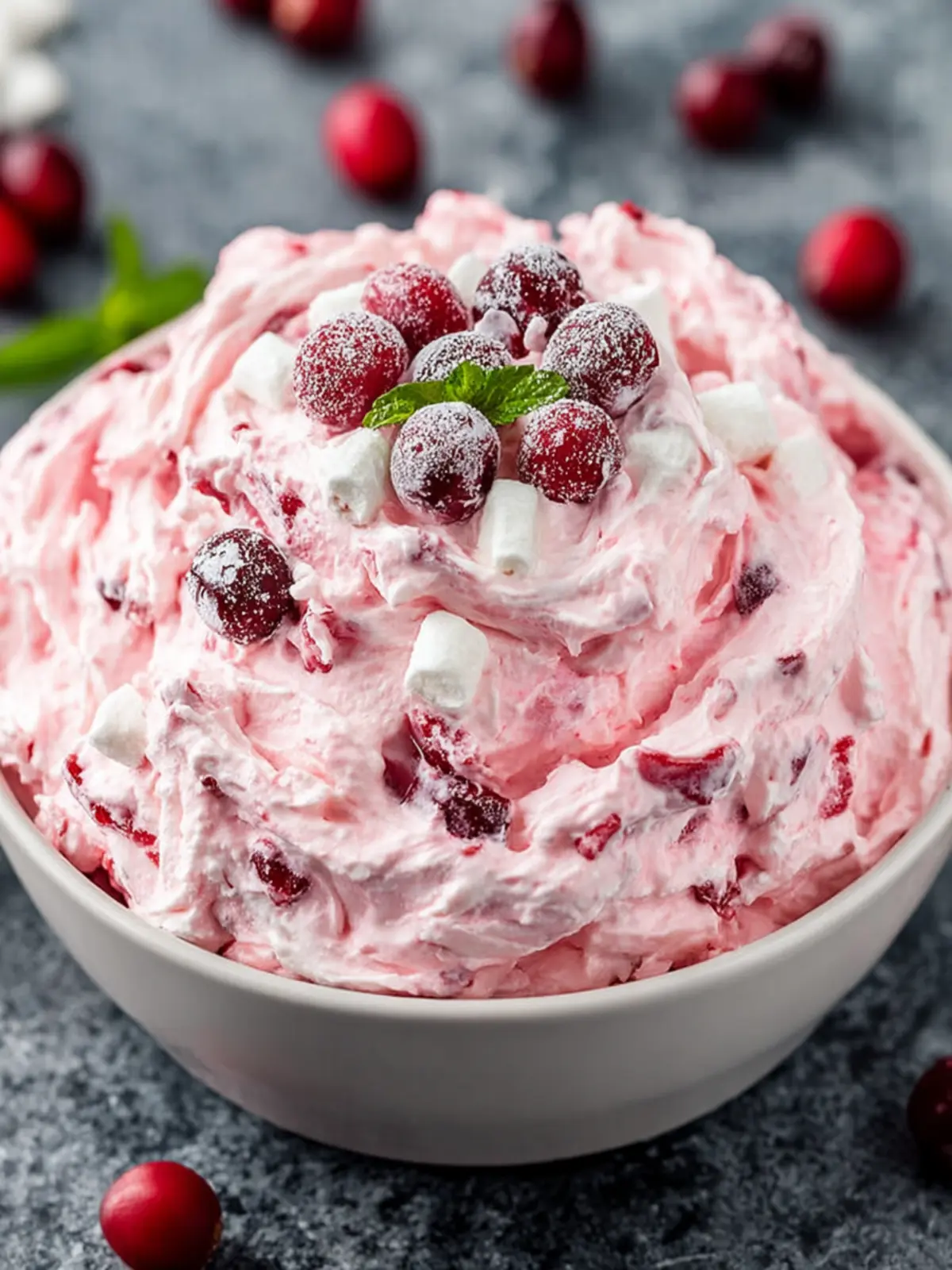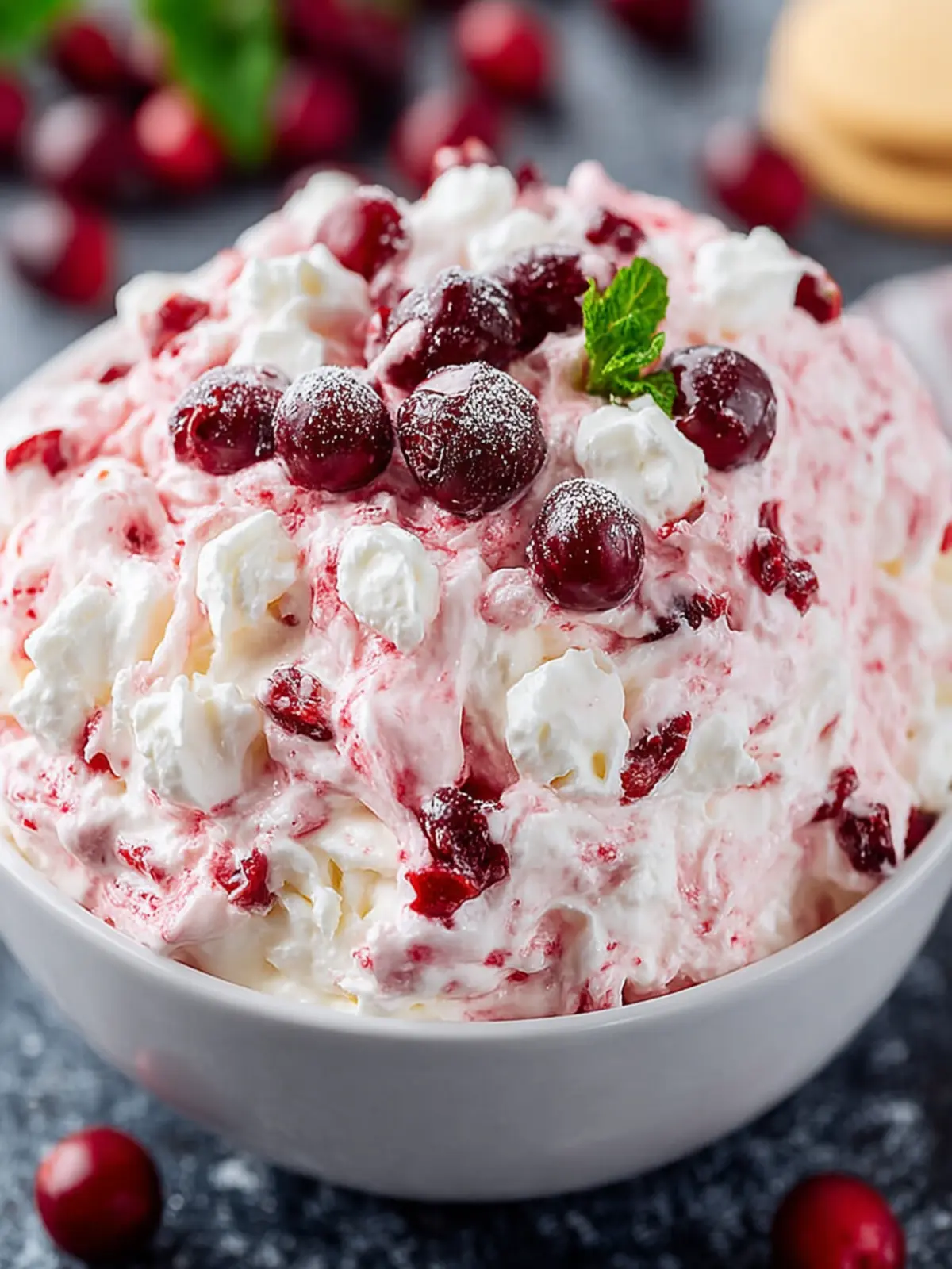 These bring a nostalgic, chewy texture to the mix, reminiscent of classic potluck gatherings. Their whimsical presence adds a fun element that makes the Cranberry Fluff Salad hard to resist, appealing to both kids and adults alike.