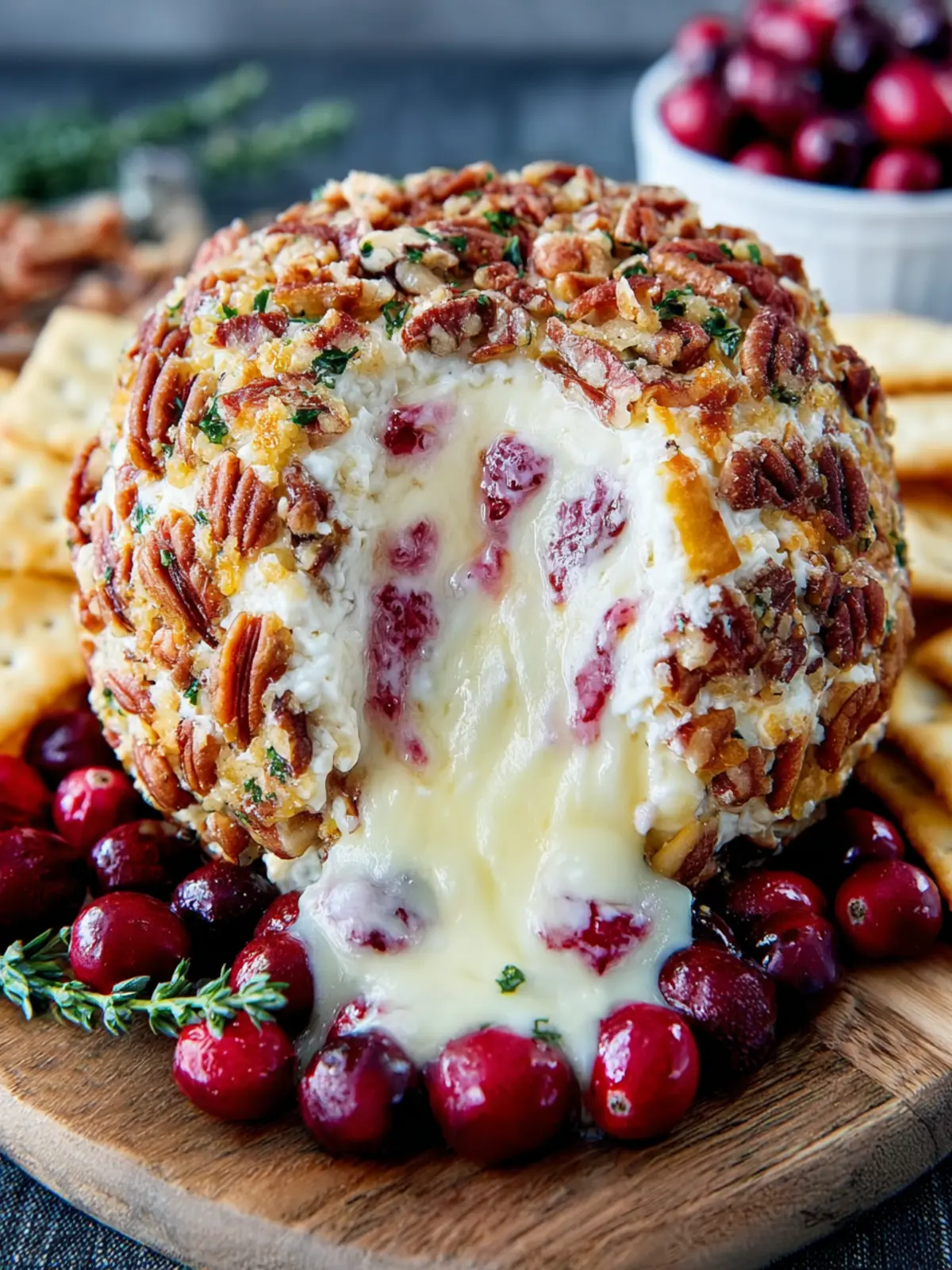 The Cranberry Pecan Cheese Ball pairs well with crackers, apple slices, and even a selection of vegetables. Create a beautiful presentation by arranging these companions around the cheese ball for a stunning appetizer platter!