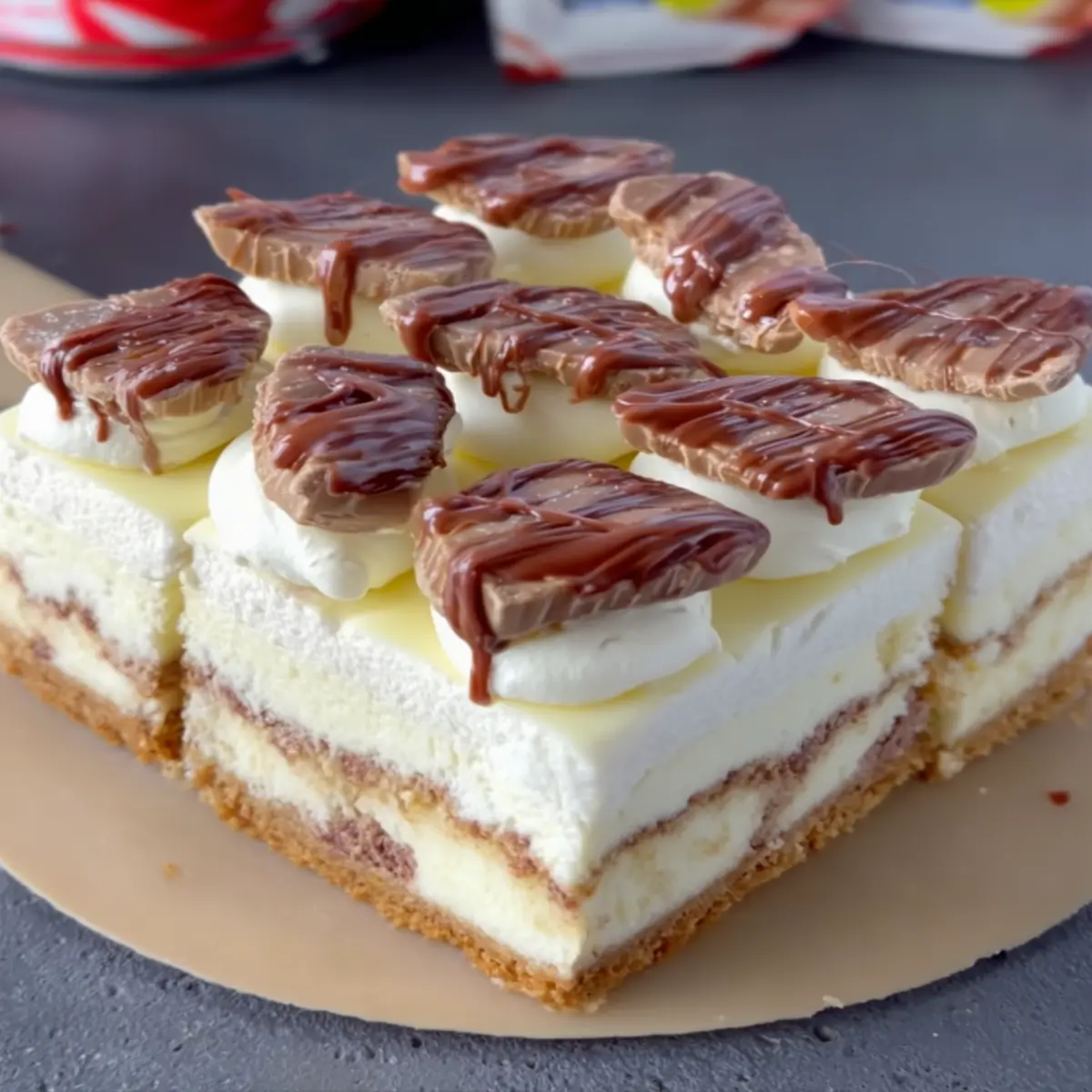 These squares are irresistibly smooth, with a rich cream cheese filling complemented by layers of chocolate and a hint of hazelnut. Each bite delivers that signature Kinder Bueno flavor, making it impossible to stop at just one square. Plus, they’re visually stunning, with swirls of creamy filling and chocolate drizzled on top, perfect for impressing guests.