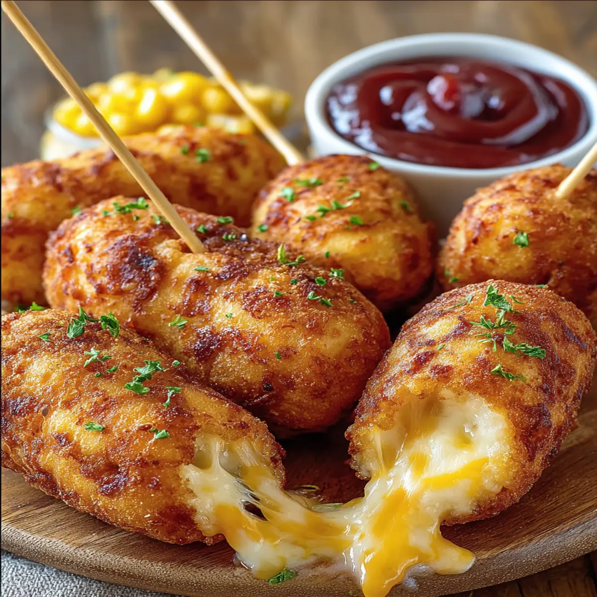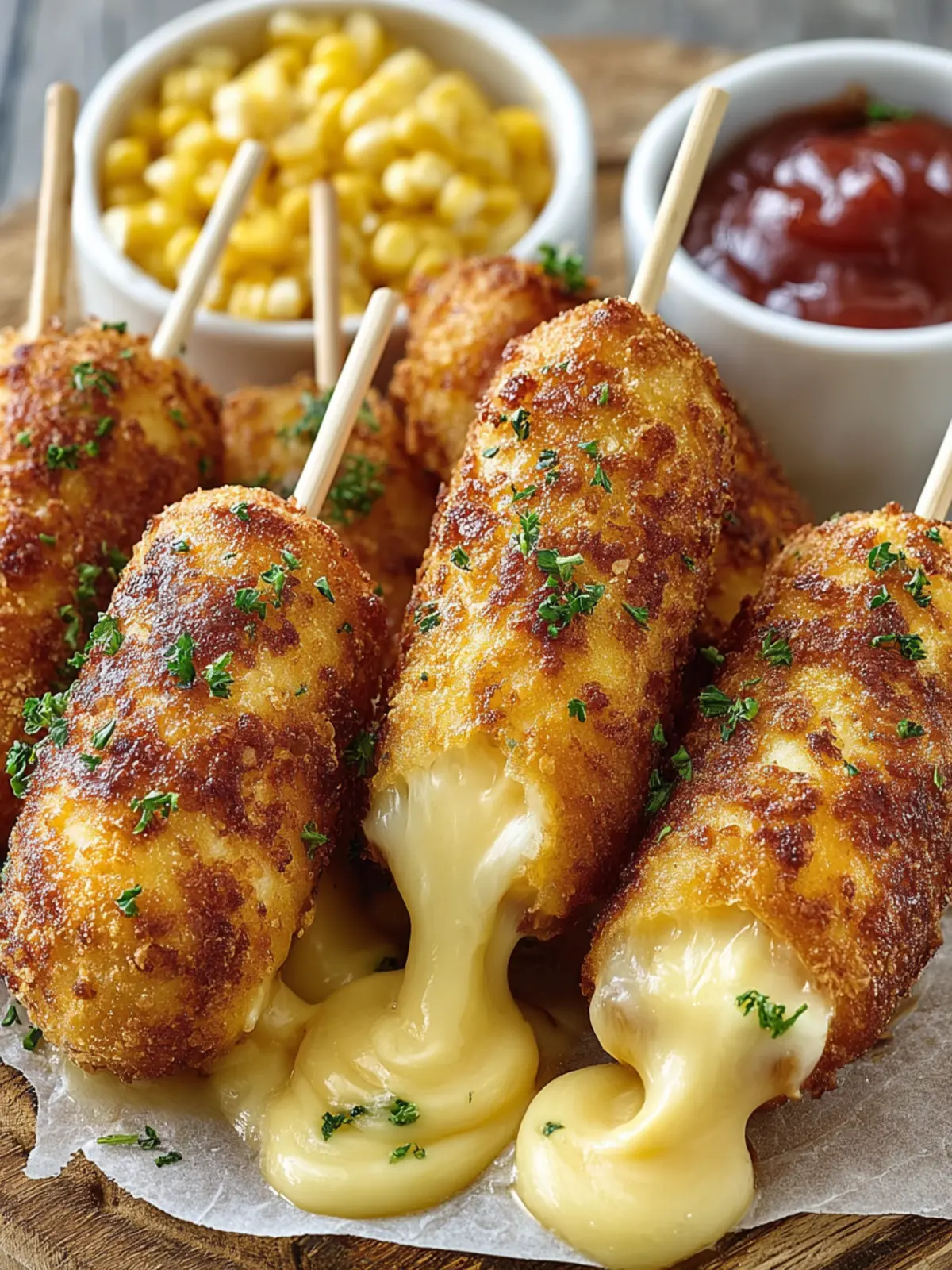 Delicious crispy cheese corn dogs that are perfect for any occasion.