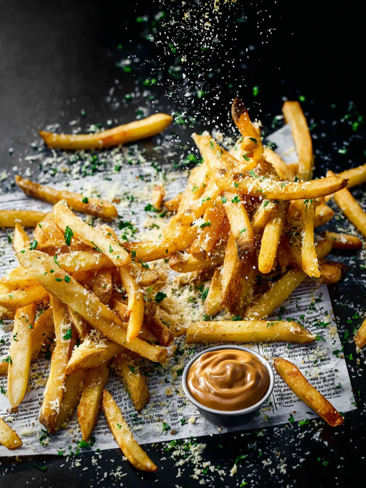 Parmesan Cheese: Adding freshly grated Parmesan is a game-changer. The cheese melts slightly onto the fries, enhancing both the flavor and the aesthetic appeal. The rich, salty notes of the Parmesan pair beautifully with the truffle oil, creating a savory explosion with every bite.
