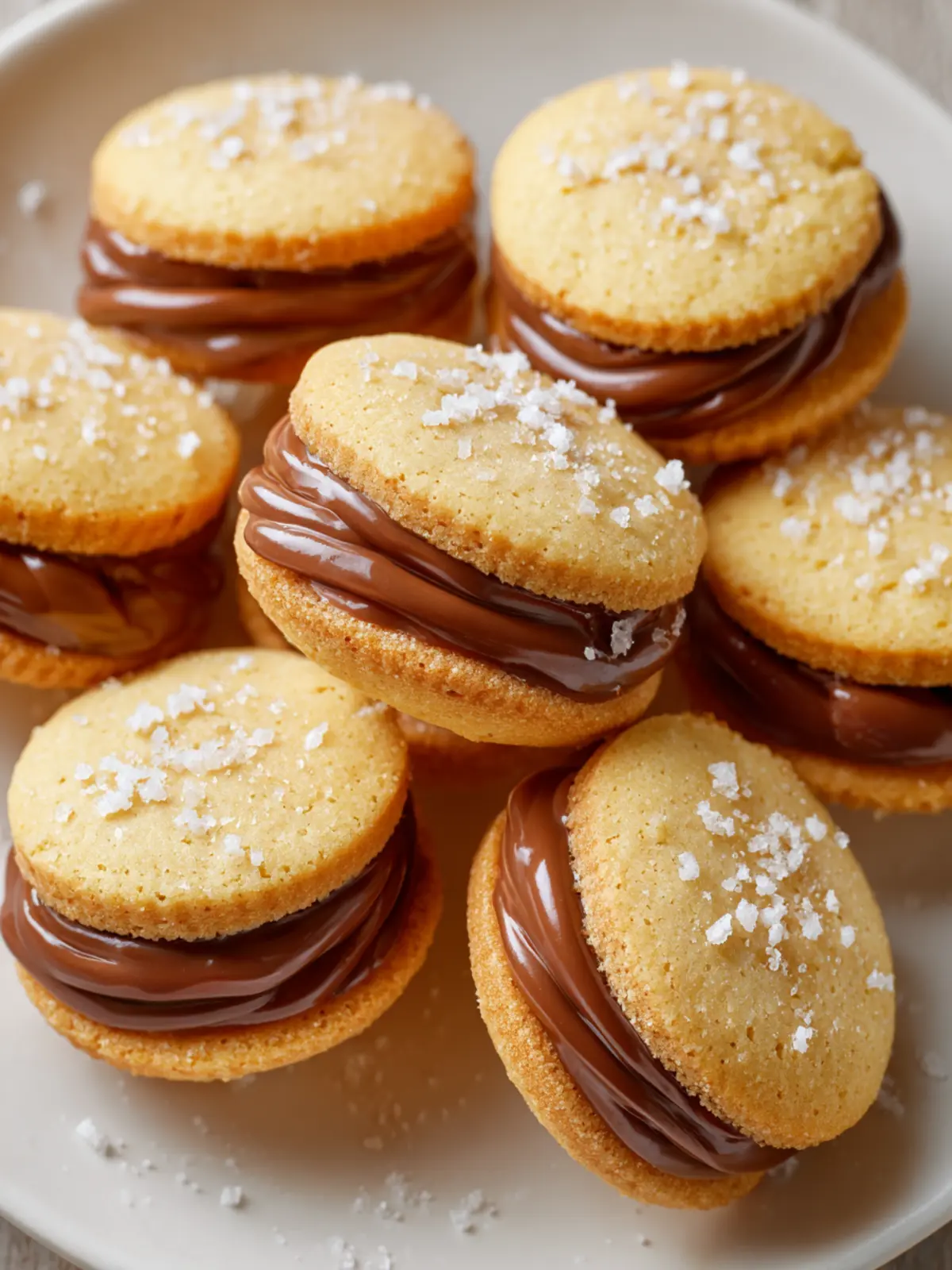 8. Stir in a pinch of kosher salt to the caramel, then spread or pipe onto half the cookies and top with remaining cookies.