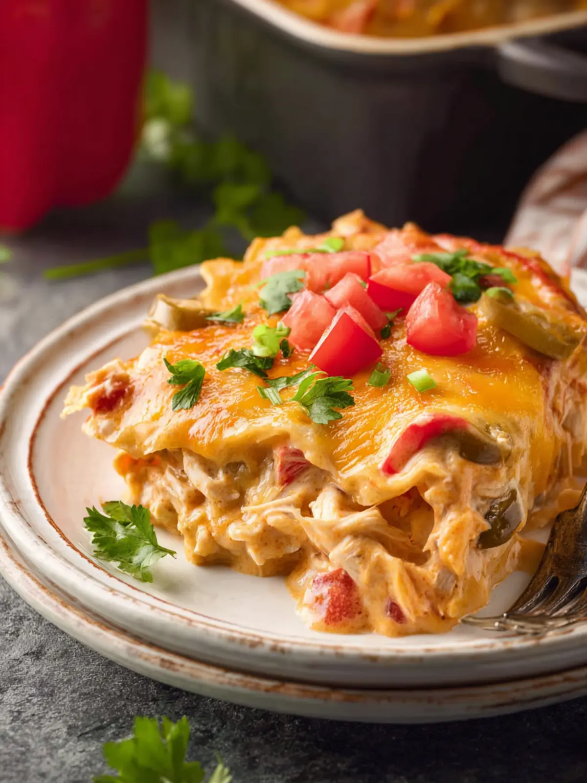 This cheesy chicken tortilla casserole is a comforting and delicious dish, perfect for family dinners or gatherings.