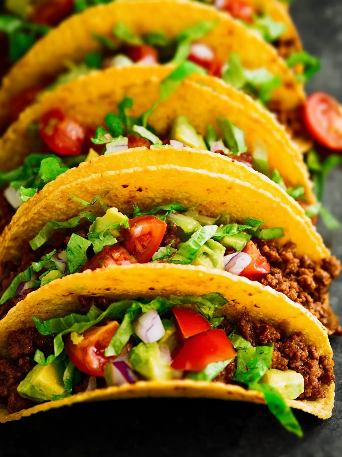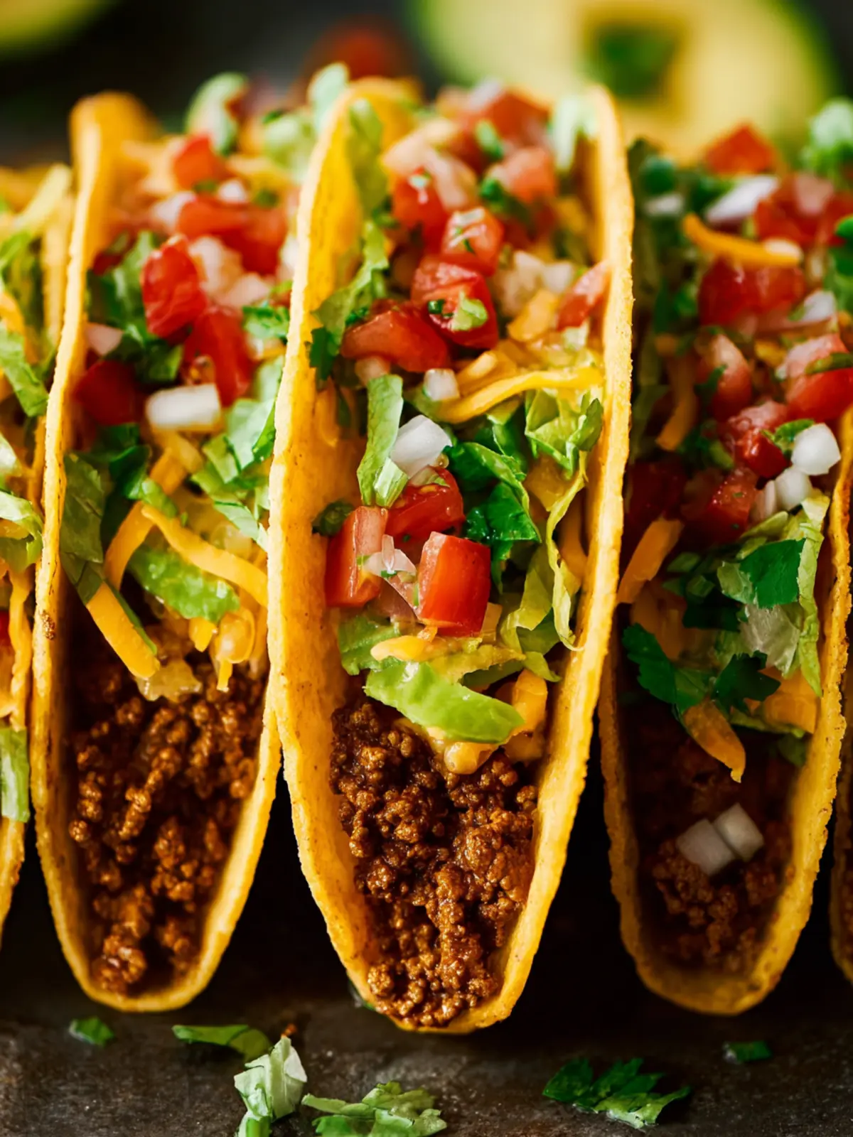 Delicious crispy tacos filled with seasoned ground beef, perfect for family dinners or parties.