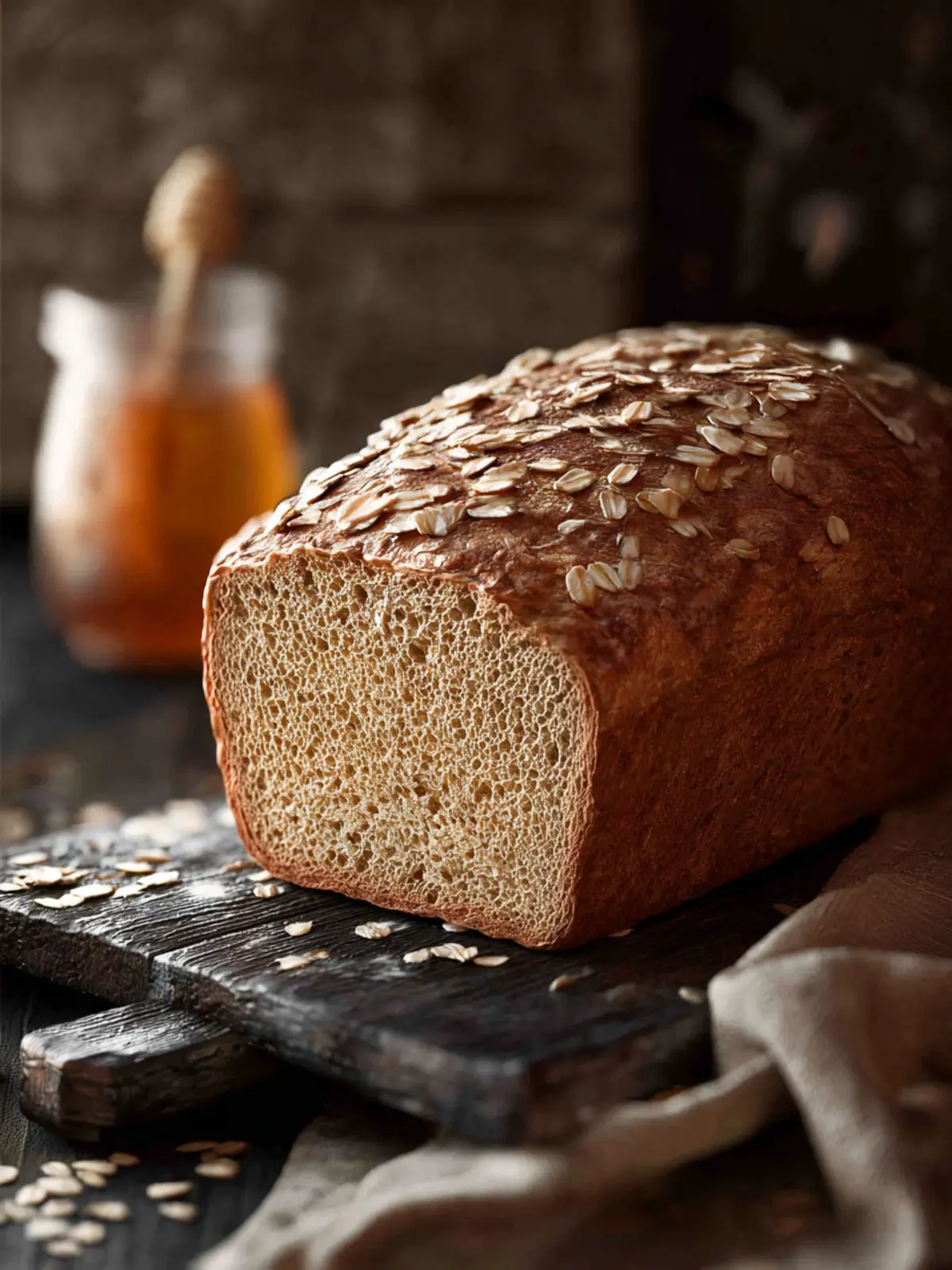 Imagine pulling a warm loaf out of the oven, its golden crust crackling as you slice into it, revealing a tender crumb infused with the subtle sweetness of honey and the delightful nuttiness of oats.