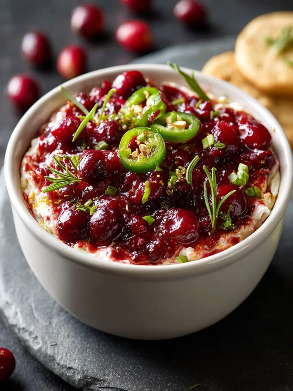 A delicious and creamy cranberry jalapeño spread perfect for holiday gatherings.