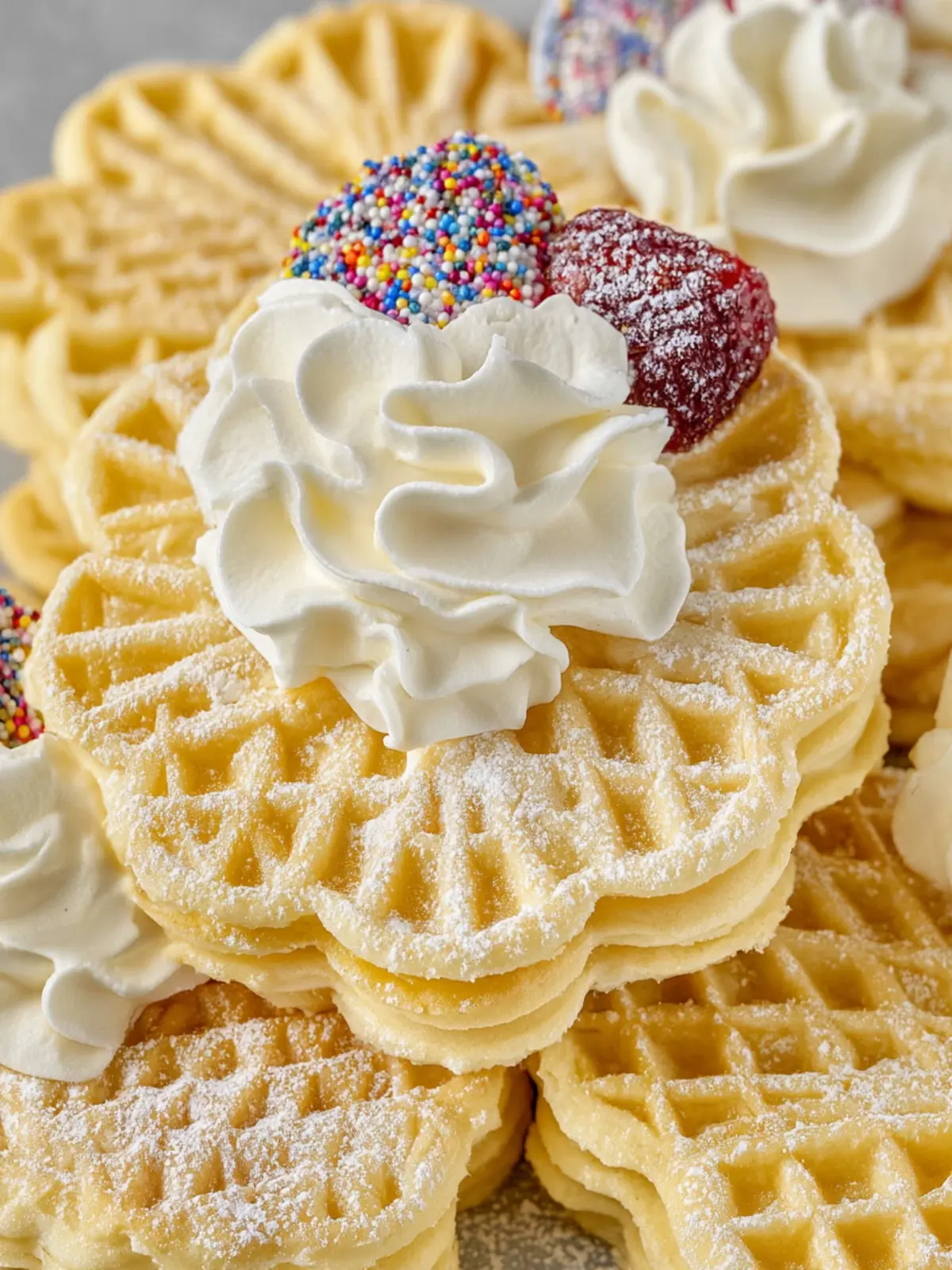 Delicious homemade pizzelle cookies, perfect for any occasion.