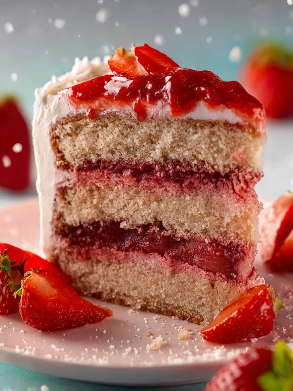 • Seasonal Freshness: With strawberries in peak season during the summer, this cake makes the most of fresh produce. Using ripe strawberries not only adds a pop of color but also infuses natural sweetness that elevates the flavor of the dessert.