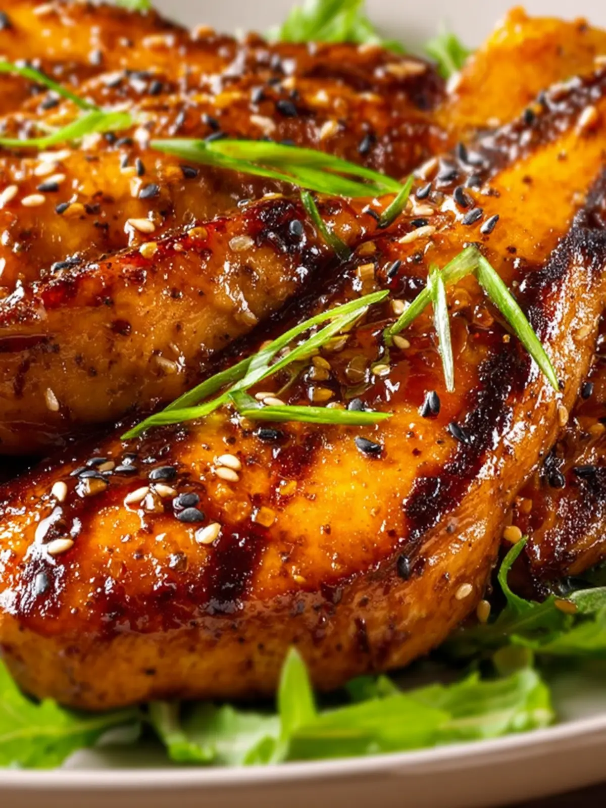 Deliciously marinated grilled chicken breasts with a sweet teriyaki glaze.