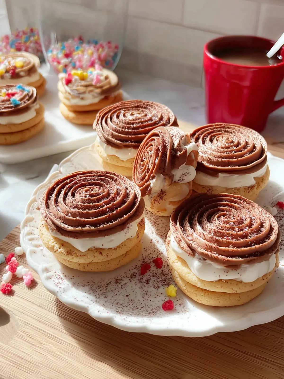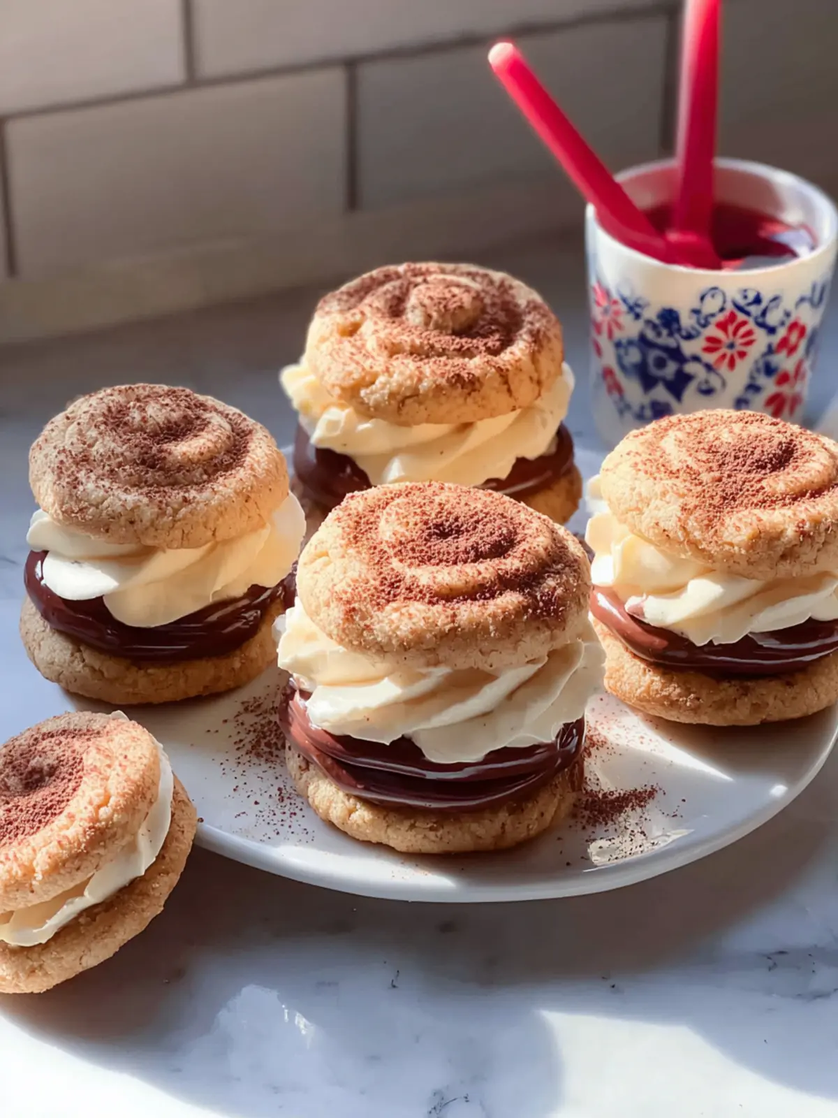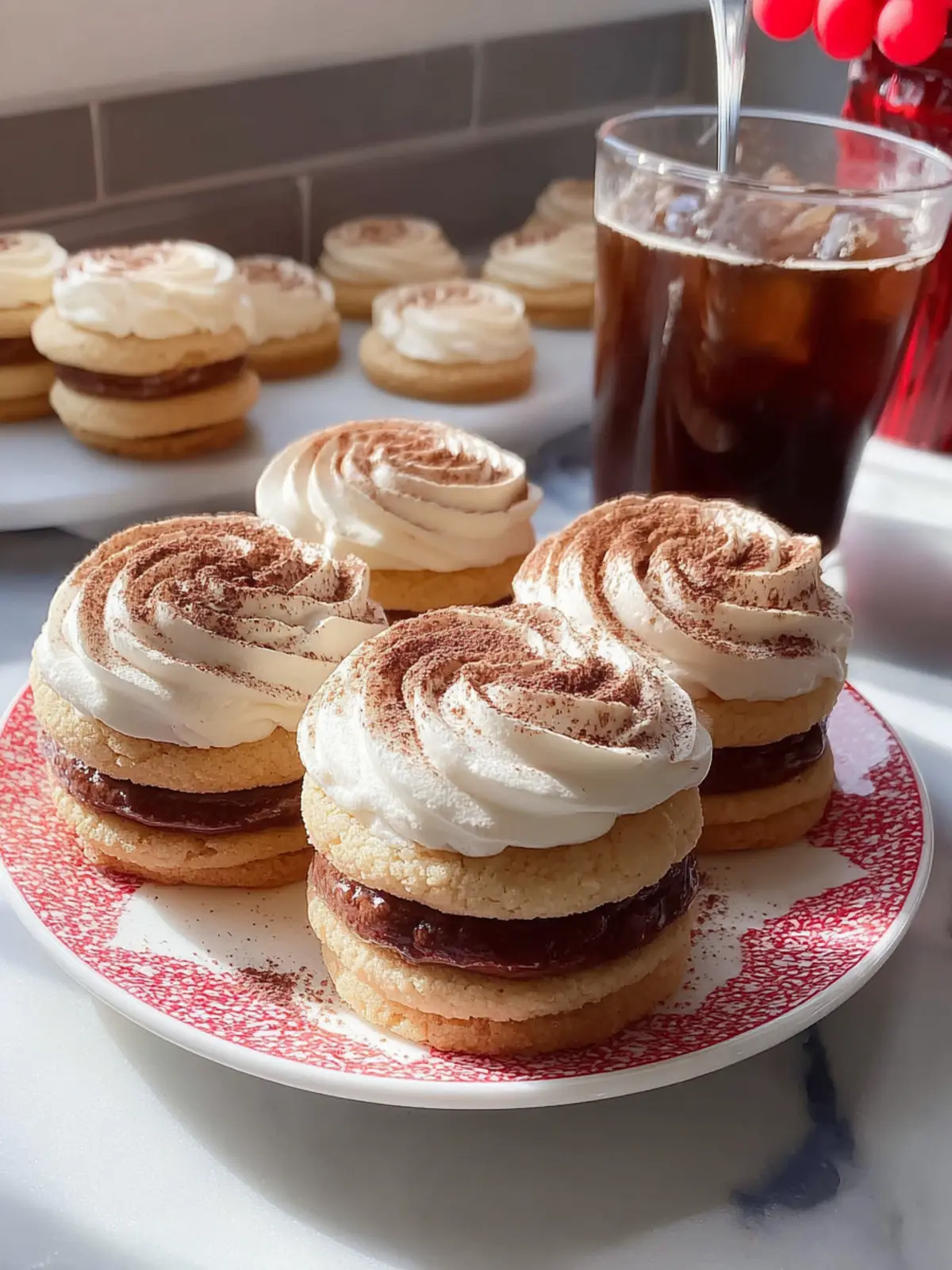 Deliciously soft cookies filled with a creamy mascarpone coffee filling, dusted with cocoa powder.