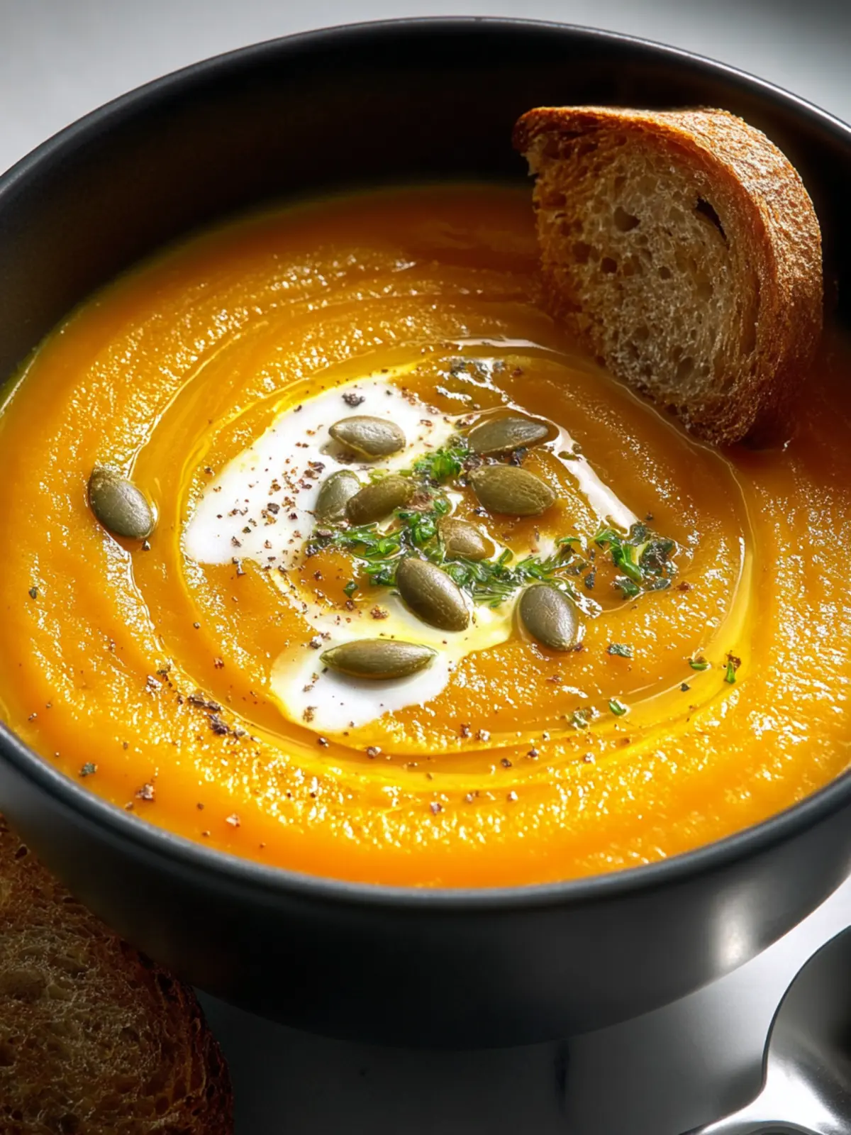 Serve with Bread: A crusty loaf of sourdough or a soft baguette perfectly complements the smooth texture of the soup. The crunch of the bread adds a delightful contrast that enhances your experience.