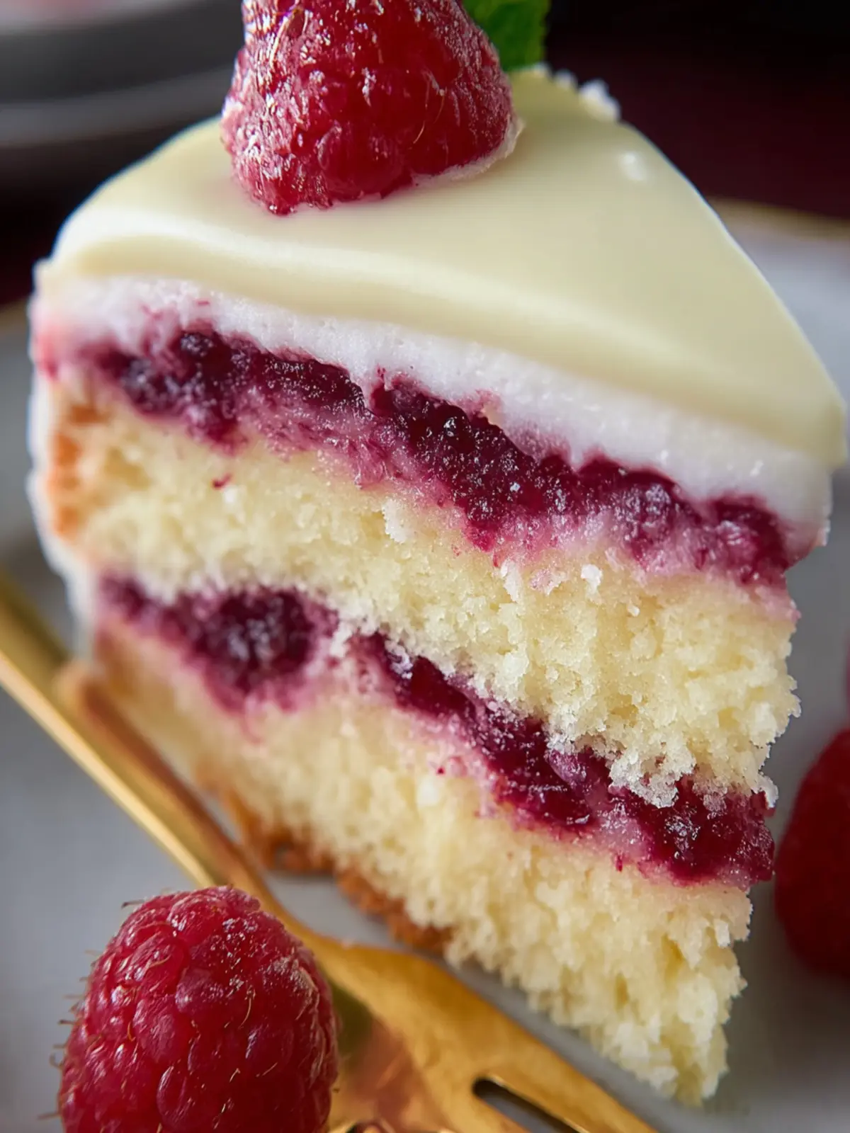 This cake is not just visually appealing; it’s a conversation starter. The creamy white chocolate frosting cascading down the sides, with pops of purple from the raspberries, invites guests to partake in its beauty. Plus, the aroma of baking white chocolate and fresh raspberries fills the kitchen, creating an inviting atmosphere that beckons people to gather.